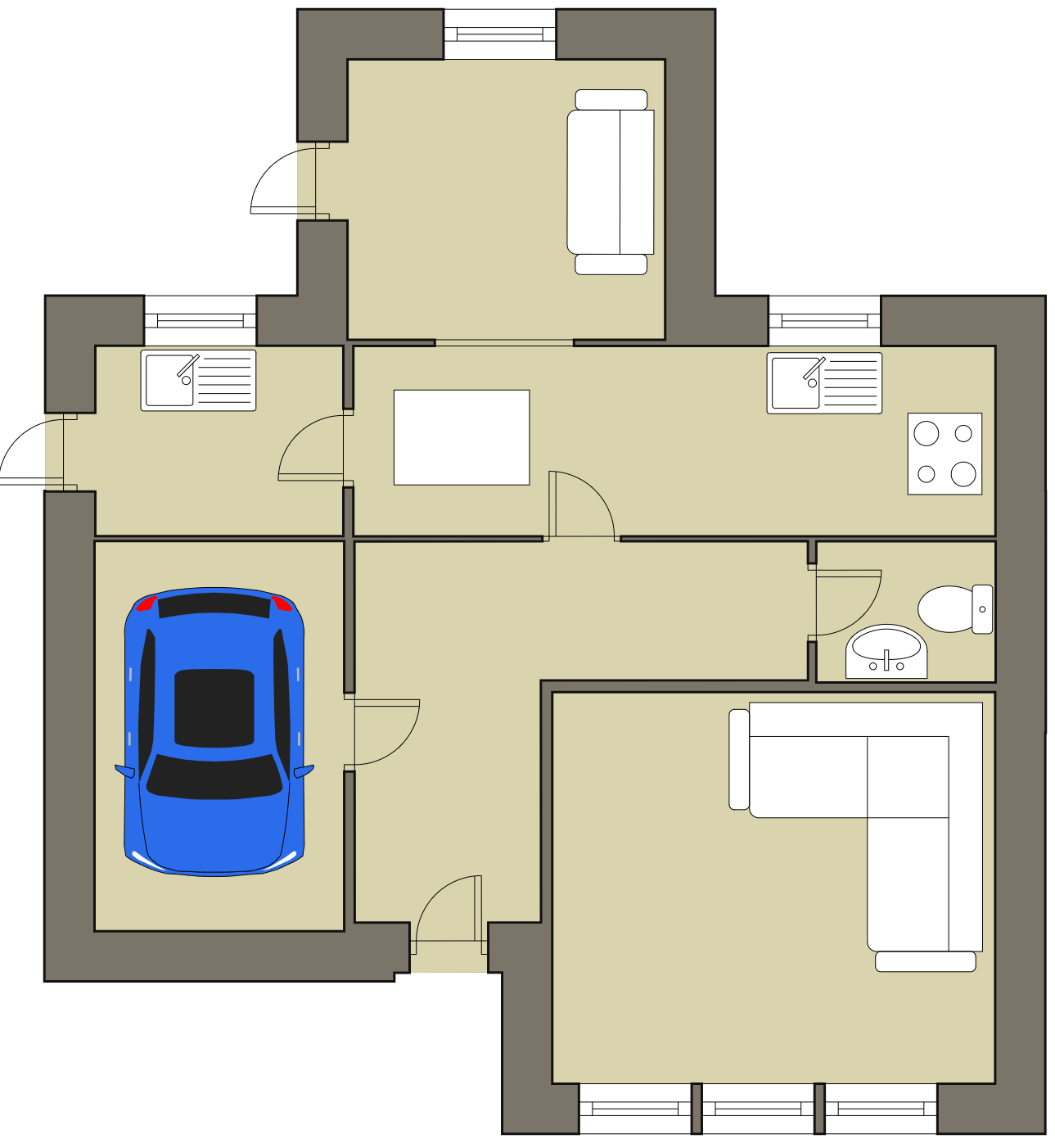 A squared opening leads through to the Sun Lounge and a door leads to the Utility Room